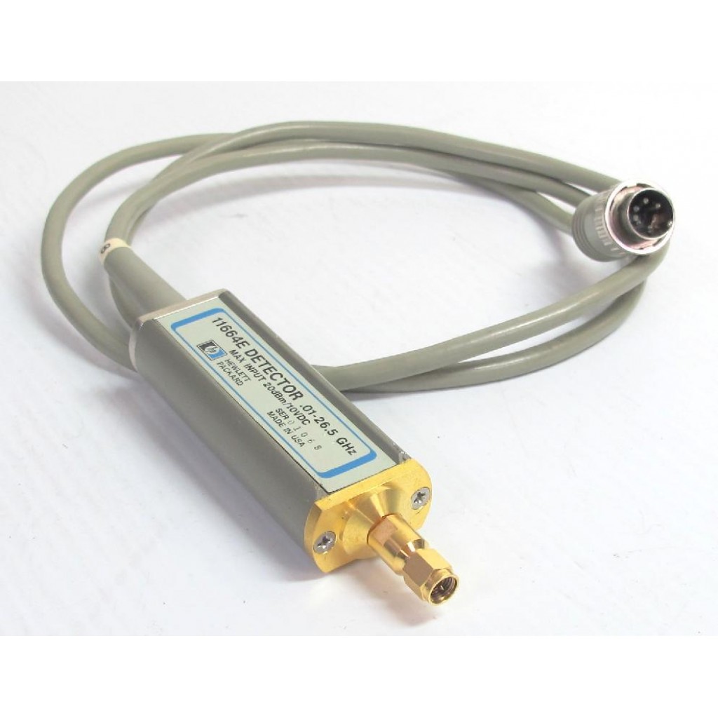 Il rilevatore 11664E è costituito da un singolo diodo Schottky alloggiato in un telaio metallico con un connettore APC 3.5. È possibile rilevare livelli di segnale RF (a seconda dell'analizzatore di rete scalare utilizzato) da -60 a + 16 dBm nell'intervallo di frequenza da 10 MHz a 26,5 GHz. Il rilevatore 11664E richiede l'uso di un analizzatore di rete scalare 8755C / 8756A / 8757A (attrezzatura consigliata). L'uso di tre rilevatori 11664E, o due rilevatori e un ponte, consente misurazioni simultanee (solo ampiezza) di trasmissione e riflessione tramite l'analizzatore CRT. I contrassegni dei cavi forniti vengono utilizzati per l'identificazione quando si utilizza più di un rilevatore in una configurazione di prova.