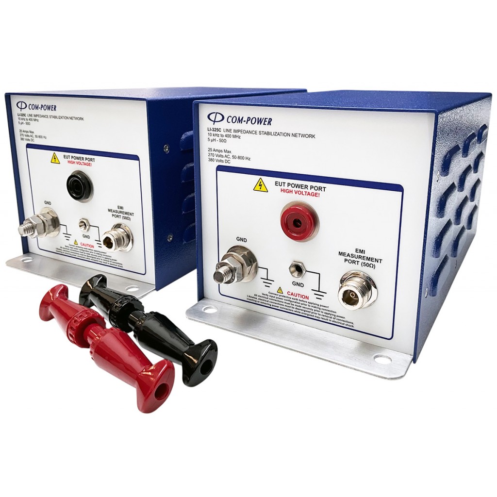 Il LISN fornisce un'impedenza stabile definita e isola l'EUT dalle influenze della fonte di alimentazione, fornendo così risultati accurati e ripetibili. La LI-325C include una coppia di reti a conduttore singolo, alloggiate separatamente, da installare in serie con ciascun conduttore che trasporta corrente in un sistema di alimentazione monofase, bifase o CC. Una seconda coppia LI-325C può essere utilizzata per ospitare sistemi di alimentazione trifase (configurazioni Wye o Delta).