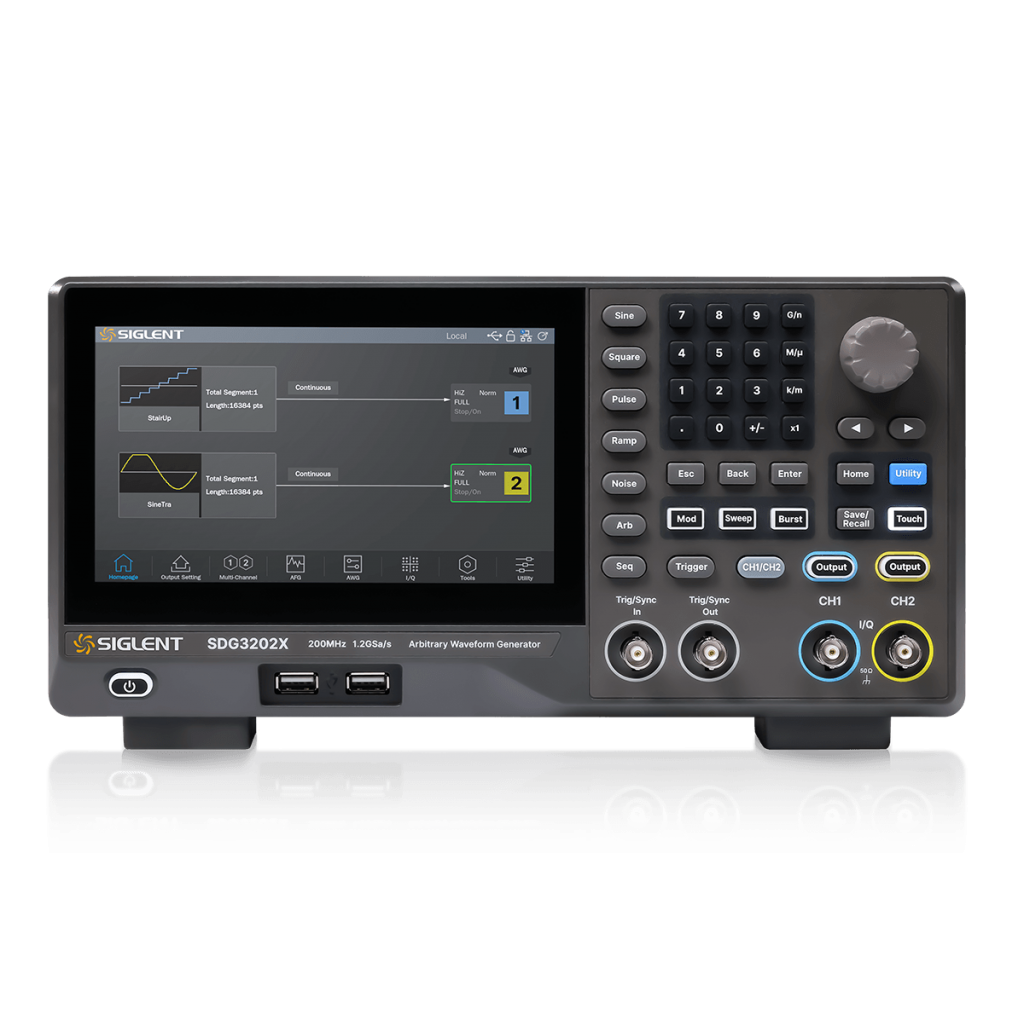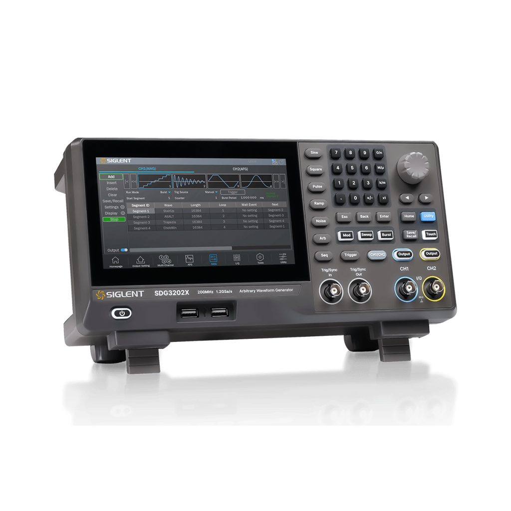 Il generatore di funzioni/forme d'onda arbitrarie a doppio canale SDG3082X offre una larghezza di banda di 80 MHz, specifiche eccellenti del sistema di campionamento con una velocità di 1,2 GSa/s e una risoluzione verticale a 16 bit.
