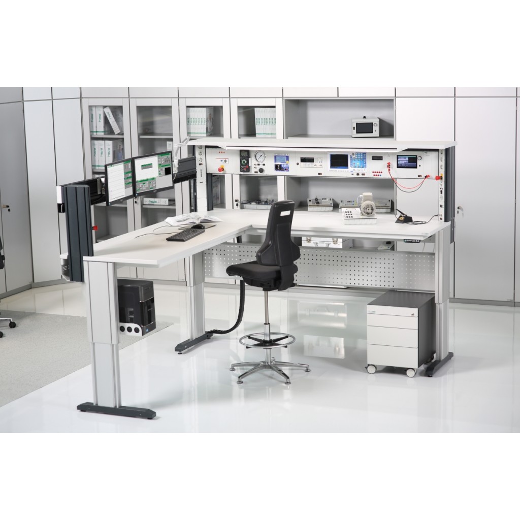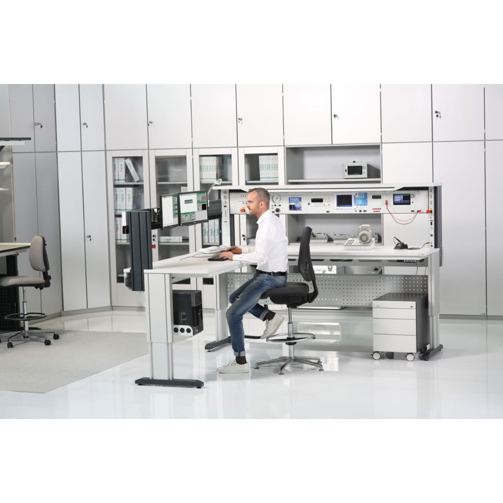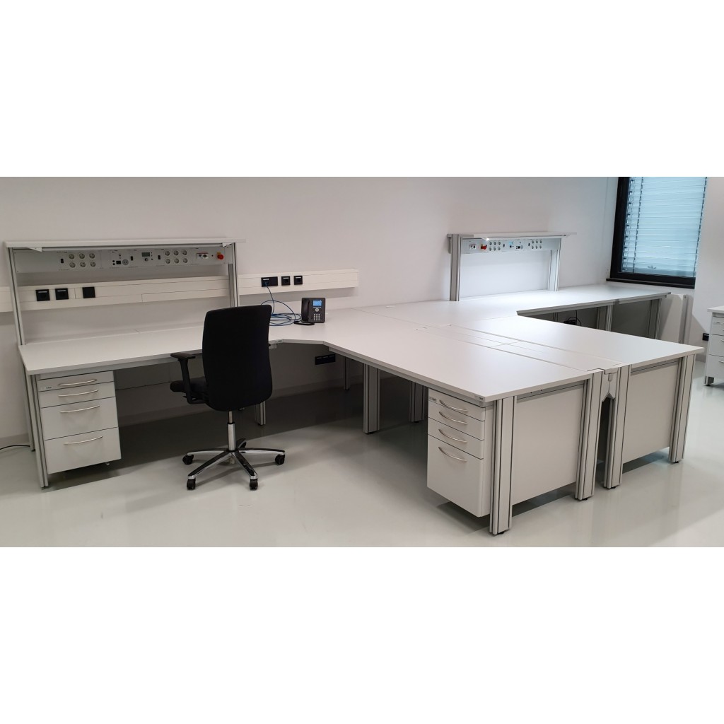 La combinazione di banchi PROFI ed elementi angolari PROFI consente la configurazione di diverse tipologie di banchi. Tutte le combinazioni sono realizzate con un adeguato spazio per le gambe in modo che anche l'angolo possa essere utilizzato comodamente. L'intera combinazione di banchi PROFI viene azionata da un elemento di comando. I sistemi di sollevamento dei banchi sono dotati di dispositivi elettrici anticollisione.