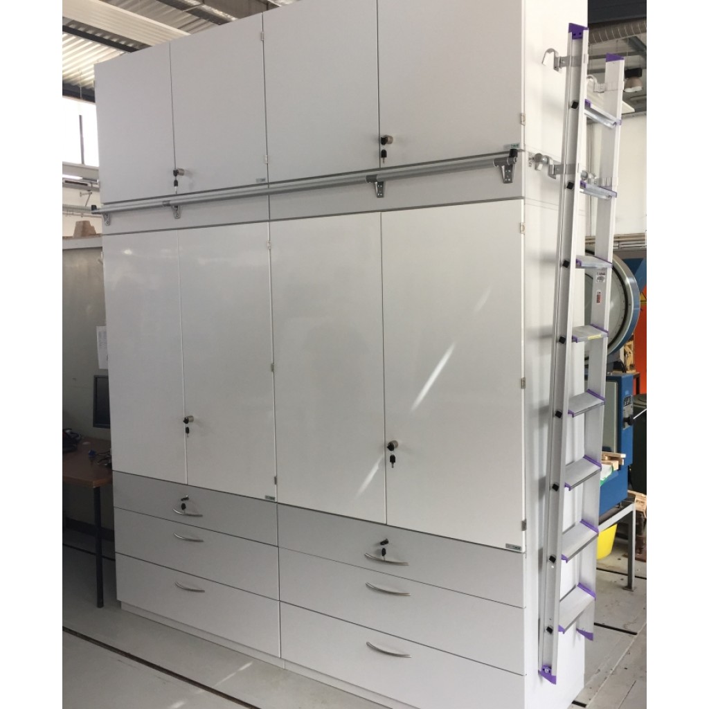 Il programma di armadi Hera si basa su un sistema modulare in cui è possibile utilizzare singoli armadi o configurare una parete attrezzata con caratteristiche speciali per laboratori, officine o laboratori didattici. Gli armadi da laboratorio di qualità superiore Hera sono anche qualificati, grazie alla parete posteriore decorativa, per fungere da divisori di ambienti. Tutte le combinazioni sono disponibili in standard o ESD.