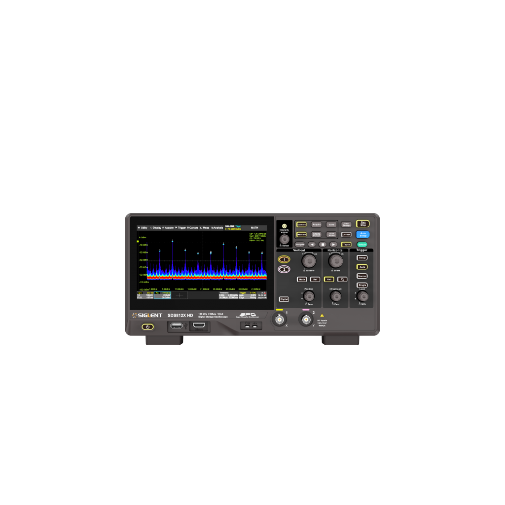 La serie SDS800X HD utilizza la tecnologia SPO di Siglent con una velocità di acquisizione della forma d'onda massima fino a 120.000 wfm/s (modalità normale, fino a 500.000 wfm/s in modalità Sequenza), funzione di visualizzazione della gradazione dell'intensità a 256 livelli più una modalità di visualizzazione della temperatura del colore. Impiega inoltre un innovativo sistema di trigger digitale ad alta sensibilità e basso jitter. Il sistema di trigger supporta molteplici modalità di trigger potenti, incluso il trigger del bus seriale. Strumenti come la registrazione della forma d'onda della cronologia, le funzioni di ricerca e navigazione, il test della maschera, il diagramma di Bode, l'analisi della potenza e consentono di acquisire, archiviare e analizzare registrazioni estese di forme d'onda. Una serie impressionante di funzionalità di misurazione e matematica, opzioni per un generatore di forme d'onda arbitrarie da 25 MHz e decodifica seriale.