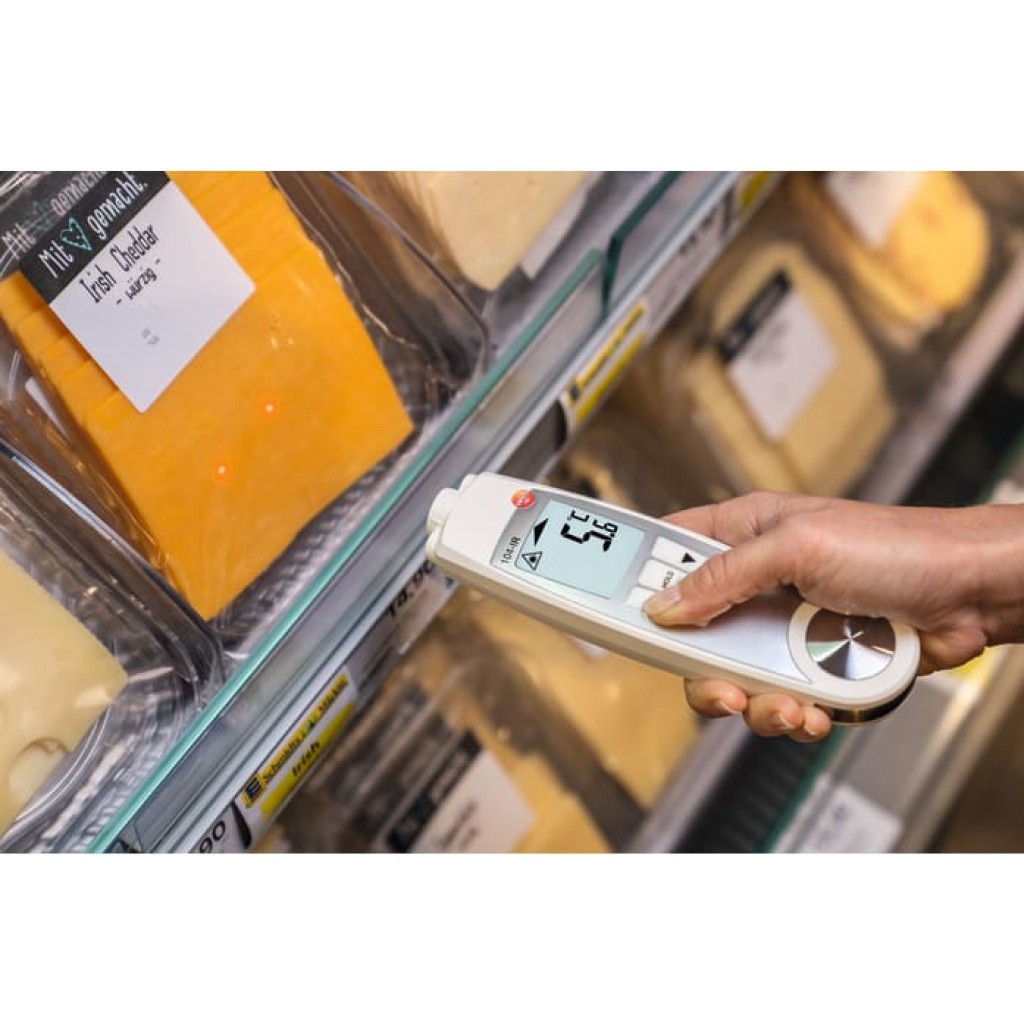 Che si tratti di accettazione, magazzinaggio o trasporto di alimenti – il rispetto della catena del freddo è un obbligo di massima importanza. Per il controllo dei valori limite di temperatura prescritti, il termometro ad infrarossi per alimenti testo 104-IR è lo strumento ideale, indipendentemente dal punto della catena del freddo che si vuole testare. Come tutti i misuratori di temperatura Testo per il settore alimentare anche testo 104-IR è certificato in base alla norma europea EN 13485 ed è conforme a HACCP.