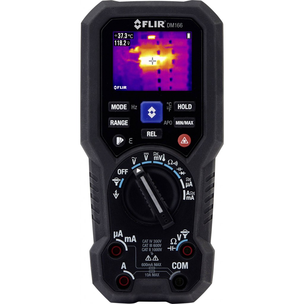 FLIR DM166 è il multimetro con immagine termica integrata più conveniente, uno strumento indispensabile per elettricisti, specialisti di automazione, periti elettronici e tecnici di impianti di climatizzazione. Grazie alla tecnologia Infrared Guided Measurement (IGM™) supportata dal sensore termico FLIR a 80 × 60 pixel, il DM166 ti guida visivamente verso la posizione precisa in cui si verificano le anomalie di temperatura e i potenziali problemi, più velocemente, in sicurezza e con maggiore efficienza. Il multimetro con funzionalità complete è uno strumento ideale per problemi complessi in installazioni ad alta e bassa tensione.