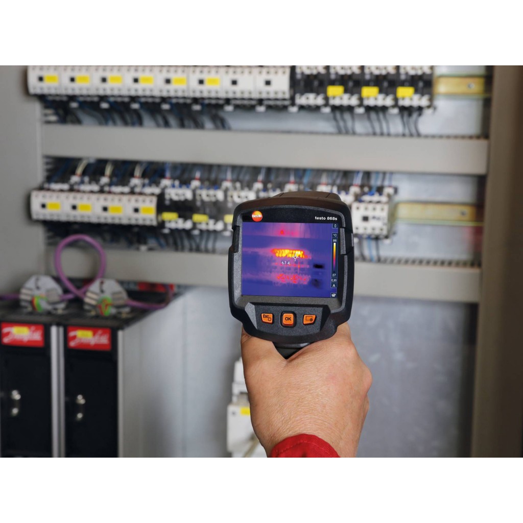 La termocamera testo 868s si contraddistingue per le sue prestazioni di misura professionali e un'eccezionale semplicità d'uso. Un modello che offre la migliore qualità delle immagini della sua categoria, una fotocamera digitale integrata e che seduce per le sue intelligenti funzioni. All'interno della pratica valigetta la termocamera può essere facilmente trasportata ed essere così sempre a portata di mano quando serve.