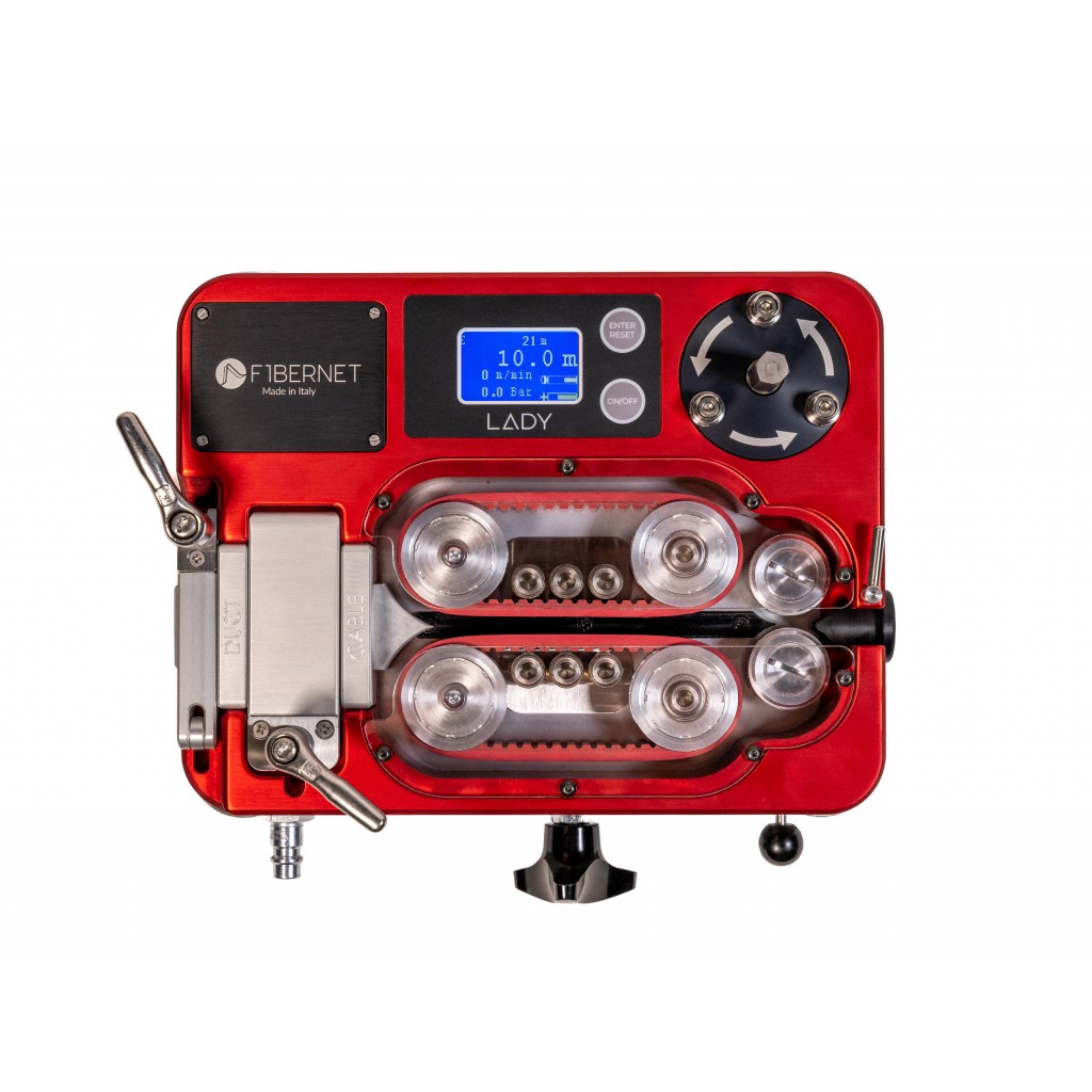 Lady è la prima macchina soffiacavo MADE IN ITALY per la posa dei cavi in fibra ottica. Interamente progettata da Fibernet per la posa di cavi delle retti FTTH.